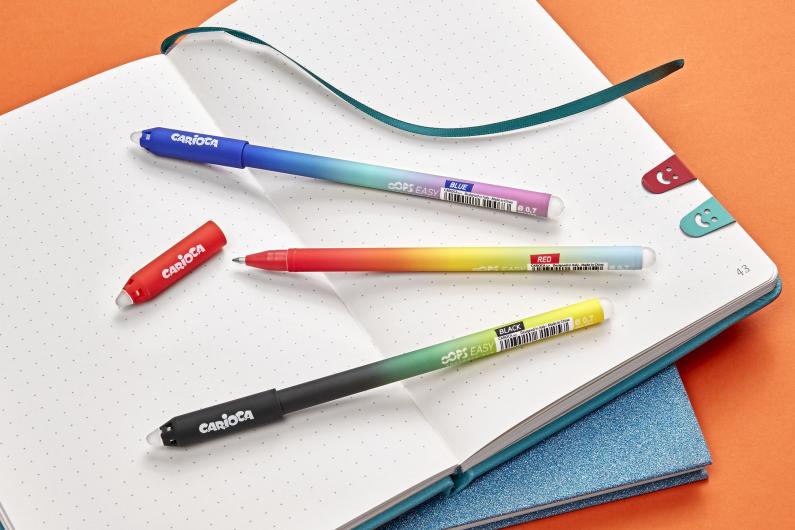 New in writing by Carioca are the aesthetically beautiful Carioca OOPS Easy, in three colours (blue, black and red), with a 0.5 mm tip instead of 0.7 mm like the other OOPS. For writing in style. Recommended age: from 6/7 years.