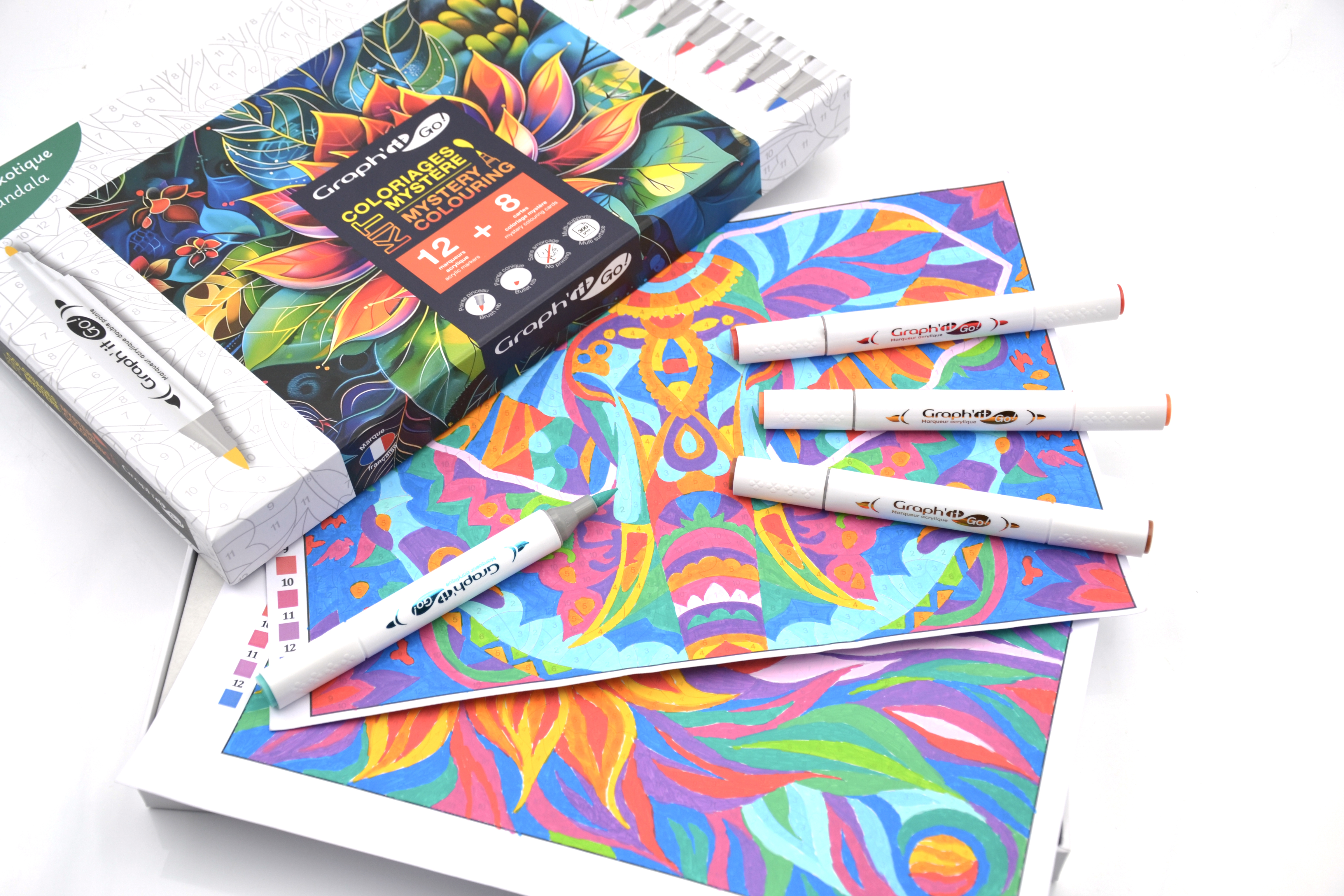 GRAPH’IT THE BOOK is an artbook with a unique paper designed for alcohol markers : 300gsm thick, smooth and bright white, its double sided paper can be colored with markers on both sides without marking the opposite side. With its rigid black carboard cover, 40 sheets and spiral binding, The Book is elegant and practical and the preferred choice of many artists.