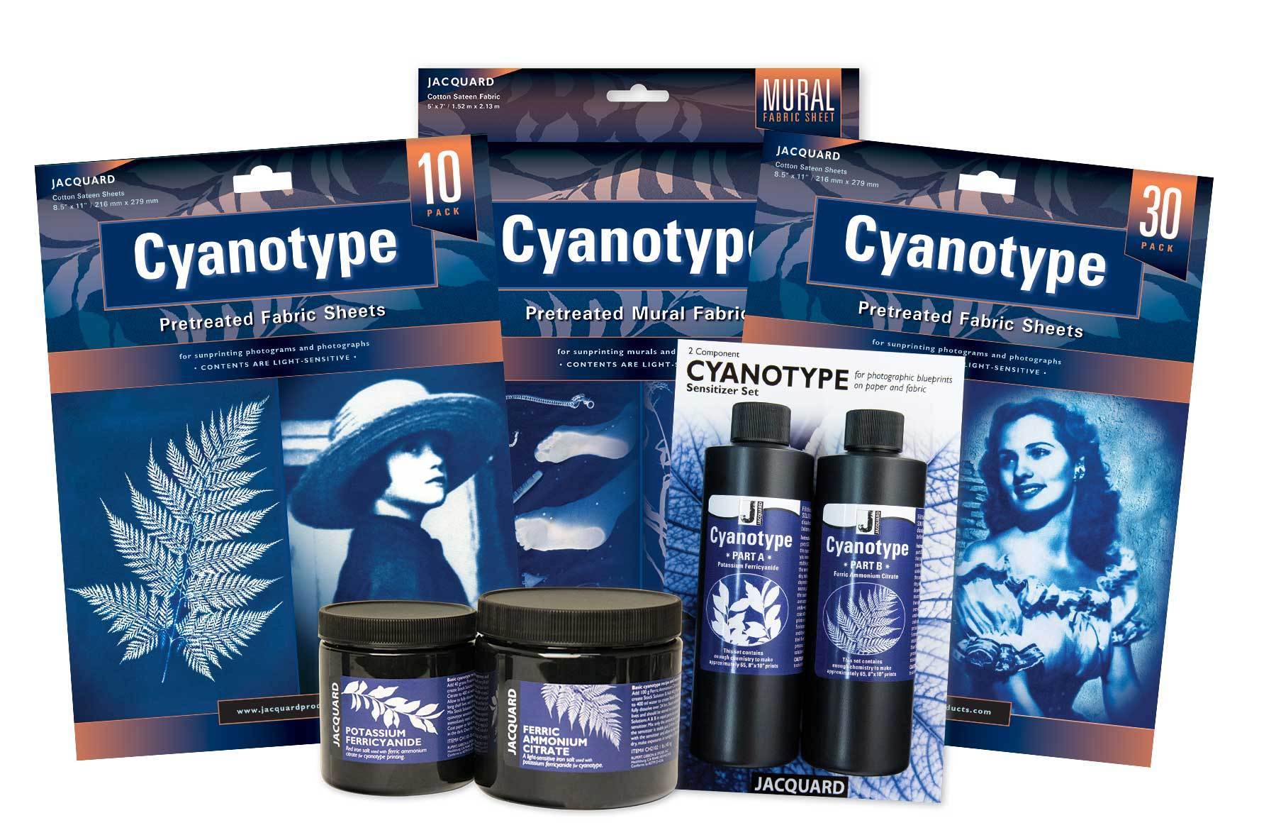 Jacquard now offers an entire line of Cyanotype products! Cyanotype is the original sun-printing process. It’s been around since the earliest days of photography. It’s easy, it’s magical, and the results are almost always stunning. Jacquard offers pretreated cyanotype fabrics, a DIY chemistry set and a class pack—a total of five different ways to experience Cyanotype. Great for photographers, mixed media artists, printmakers, quilters, kids and more! A great group activity for any age. We have also created a support website that makes it easy to creative photographic Cyanotype prints: www.jacquardcyanotype.com.