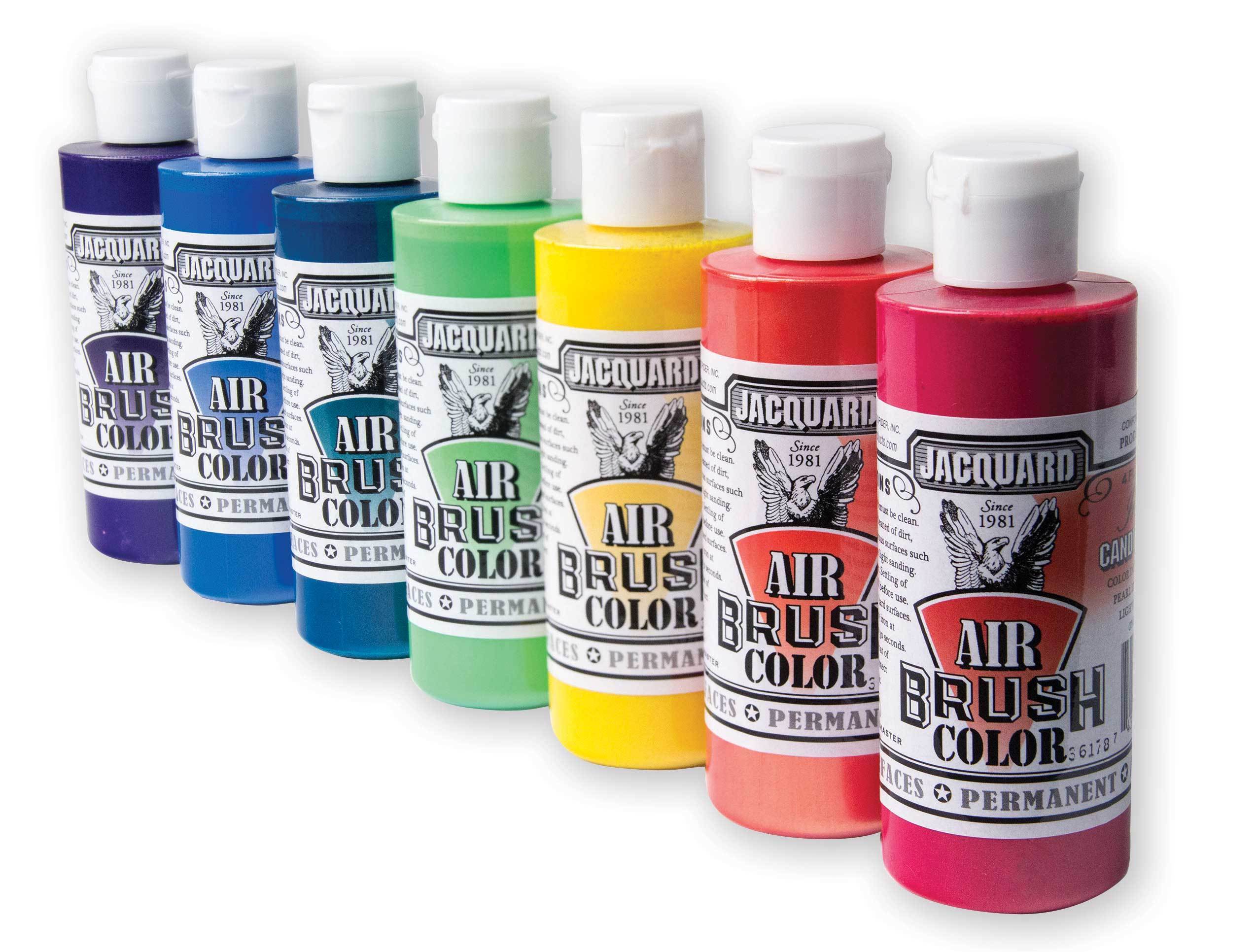 Jacquard Airbrush colors raise the bar for both quality and economy in the world of airbrush paints. This multi-surface, artist-grade, fluid acrylic airbrush paint sprays like a dream and outperforms every other brand. Jacquard’s Airbrush Colors have excellent coverage, adhesion and durability on a variety of surfaces. On fabric, the paints are soft to the touch, washable and dry-cleanable.