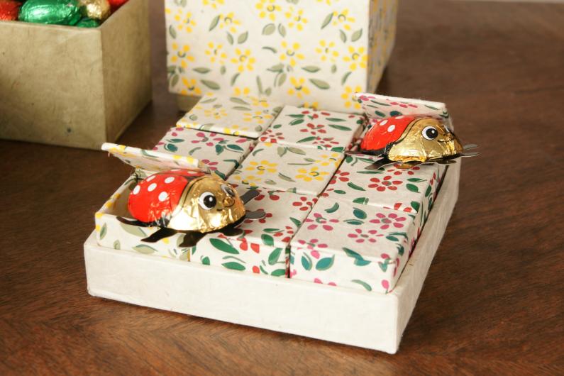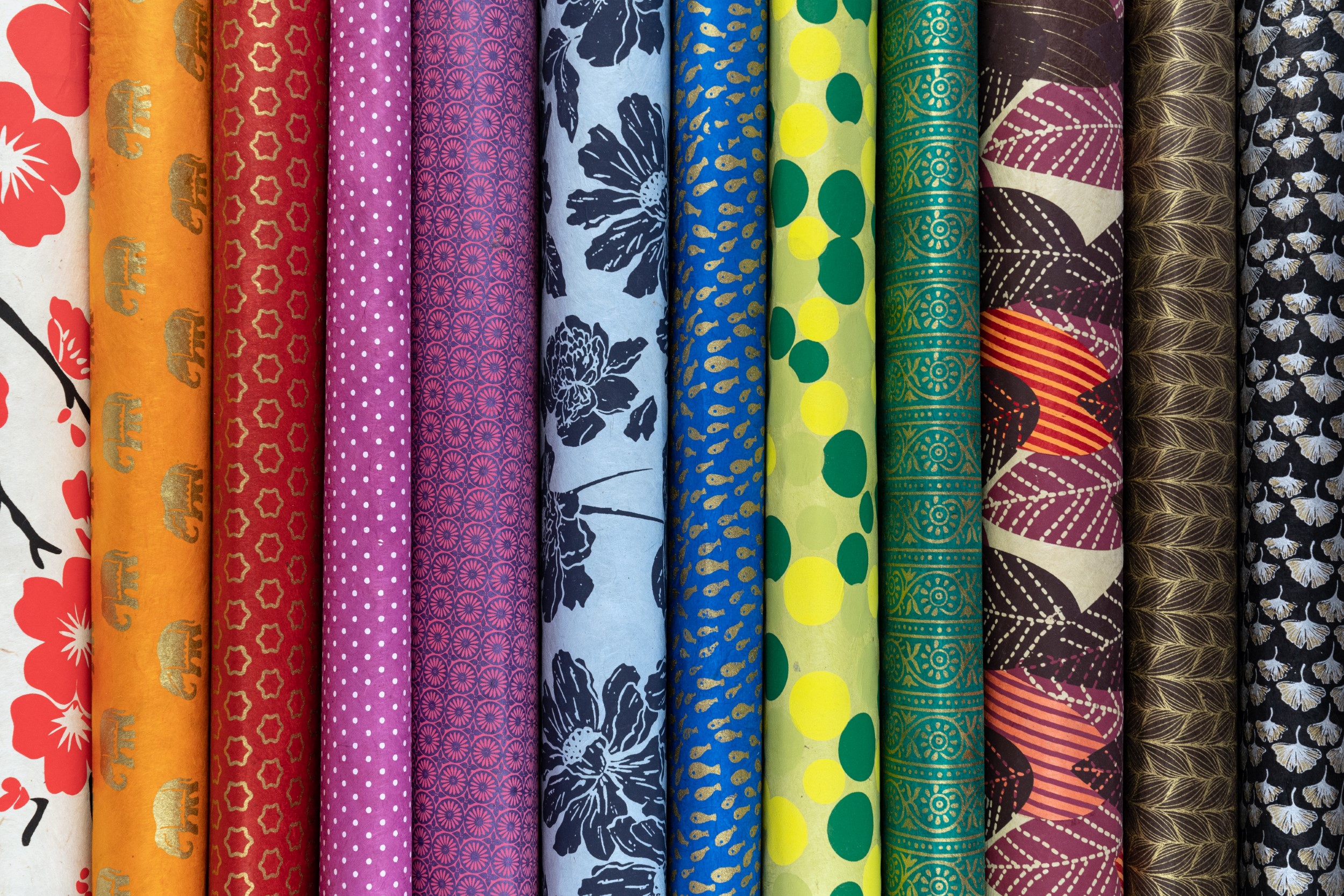 Unsere nepalesischen Papiere werden fast ausschließlich aus der Rinde des Seidelbaststrauches hergestellt, der in Nepal Lokta heißt. Die Fasern des Lokta-Bastes sind lang, sehr elastisch und geben dem Papier einen seidigen Glanz. Das Papier vergilbt nicht, ist antiseptisch und völlig unanfällig für jede Art von Schädlingen. Lokta wächst ab einer Höhe von 1600 Metern. Für die Ernte werden die Äste geschnitten und dann geschält. In etwa 5-7 Jahren kann dann wieder geerntet werden. So sind Lokta Papiere nachhaltig und ökologisch einwandfrei. Nach dem Schälen der Zweige wird die Rinde zerkleinert und mit Asche gekocht, in der Regel werden die entrindeten Äste dafür als Brennmaterial verwendet. Wenn der Loktabrei die richtige Konsistenz hat, wird er unter Zugabe von frischem Wasser zur Pulpe, die dann gleichmäßig in den Schöpfrahmen gegossen wird. Durch das Sieb läuft das überschüssige Wasser ab und der Rahmen wird aus dem Wasser gezogen, also „handgeschöpft“ und dann zum Trocknen in der Sonne aufgestellt. Wie alle handgeschöpften Papiere haben auch Lokta Papiere keine Laufrichtung, die angegebenen Maße sind circa Maße, jeder Bogen hat den typischen etwas unregelmäßigen Büttenrand. Die Bögen werden in der Regel in unterschiedlichen Gewichten dort hergestellt, wo Lokta auch wächst und geerntet wird, dann werden die Bögen zur Strasse getragen und von da ins Kathmandu-Tal gebracht, dort werden sie gefärbt, bedruckt und zu ganz verschiedenen Produkten weiterverarbeitet.