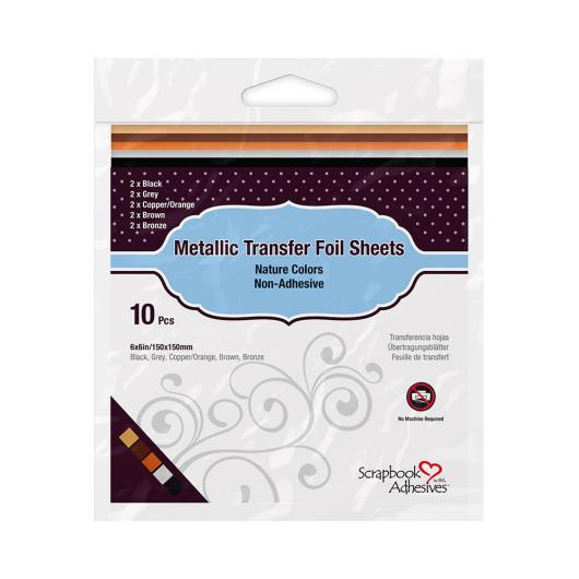 Metallic Transfer Foils Nature adds colorful shine to cards, scrapbooks, DIY, and mixed media projects. This package contains 10 sheets of nature colors sized 6 x 6".