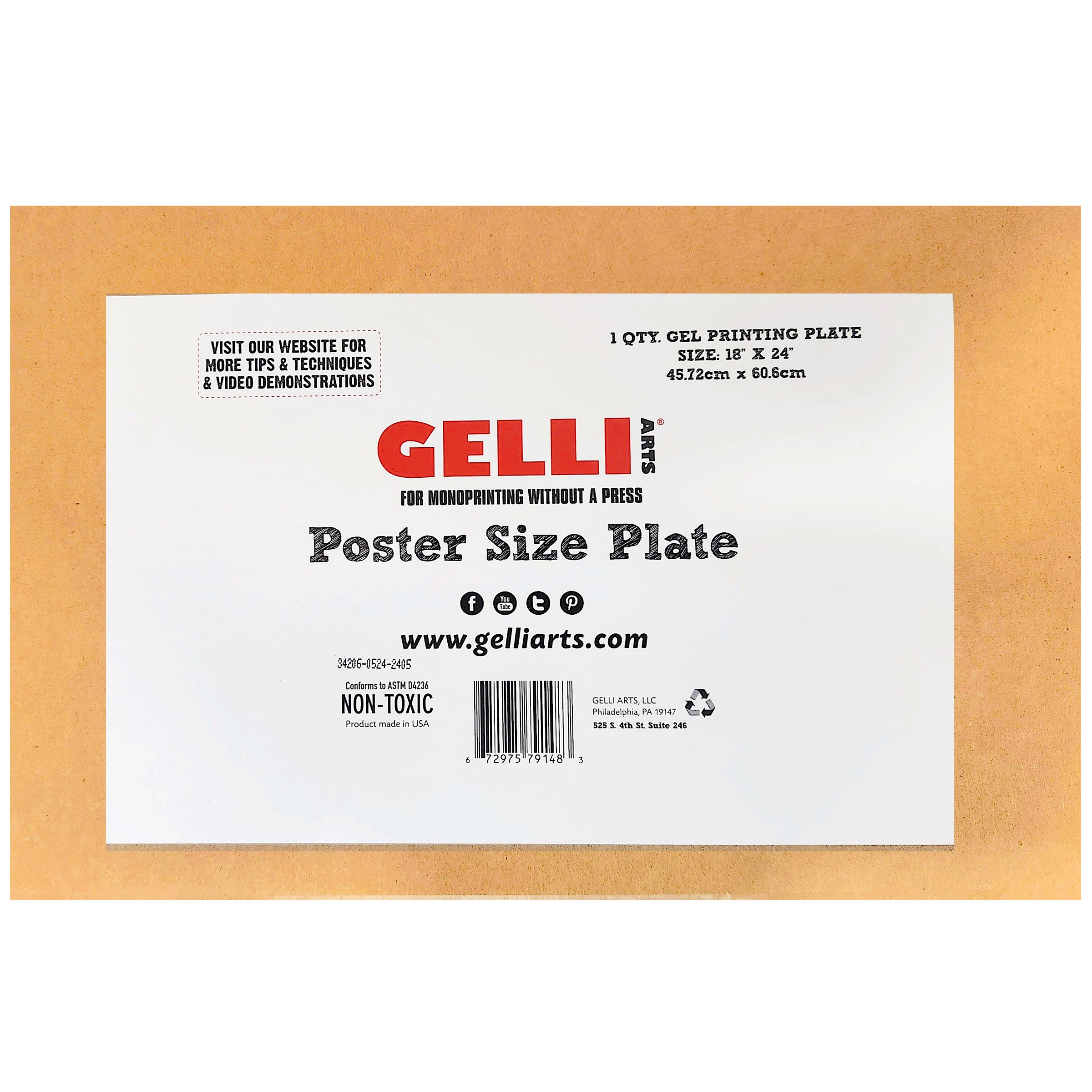 - NEW POSTER SIZE PLATE - 18" x 24" ( 65.4x42.6x1.9cm) - the larges gel plate in the world is now availalbe. This product is a work of art by itself - with a glasslike smooth surface for printing your masterpieces.