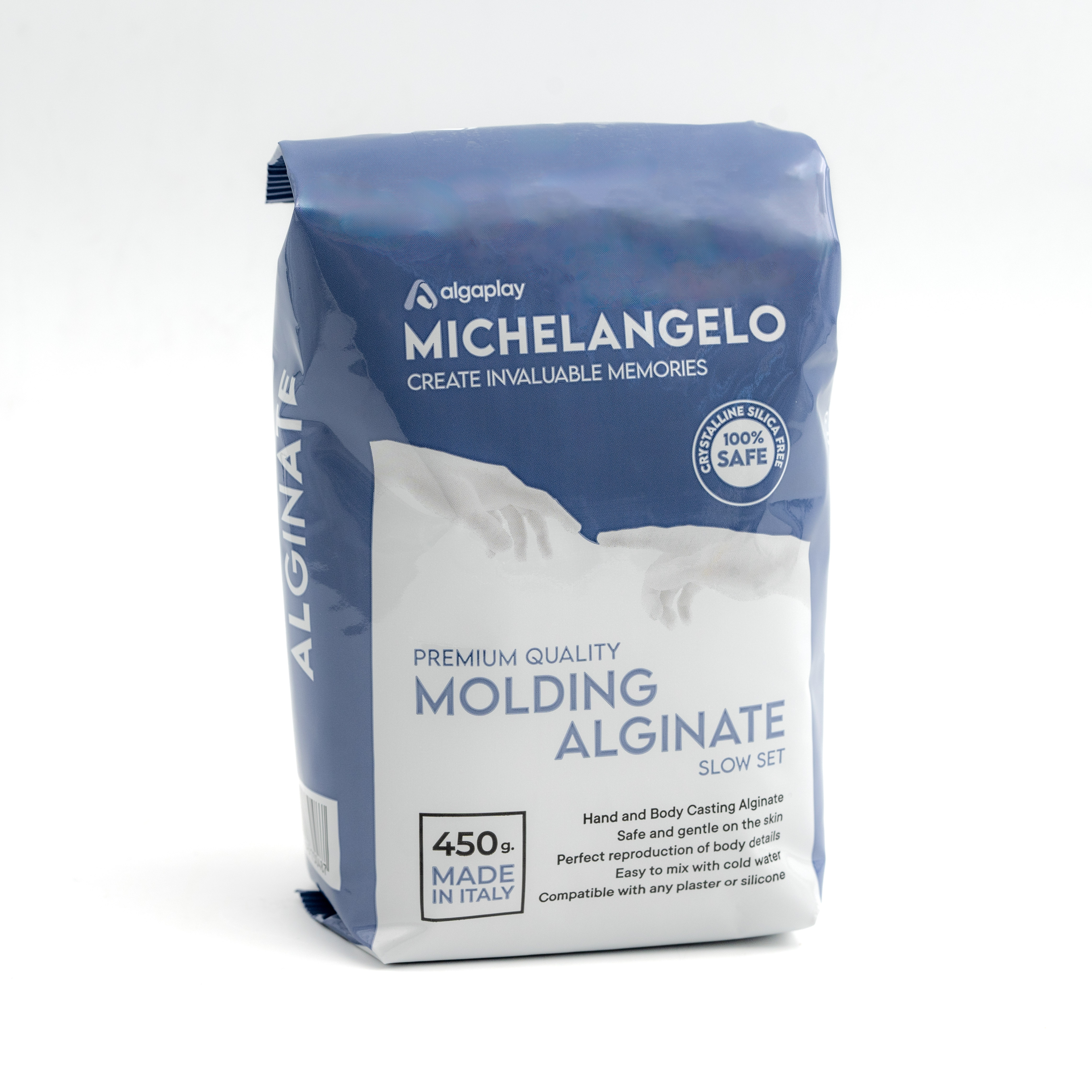 Michelangelo Casting Plaster is a premium-quality, fine-grain plaster designed to produce exceptionally strong and detailed 3D casts. Its smooth texture, fast drying time, and pure white finish ensure professional results with every use. Ideal for hand moldings, art projects, and reproductions, it provides durability, precision, and an elegant look. 100% Made in Italy – the perfect choice for lasting creations.