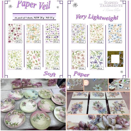 ultralight, almost transparent papers, glue to the specific thermoformable plastic sheet and mold with heat