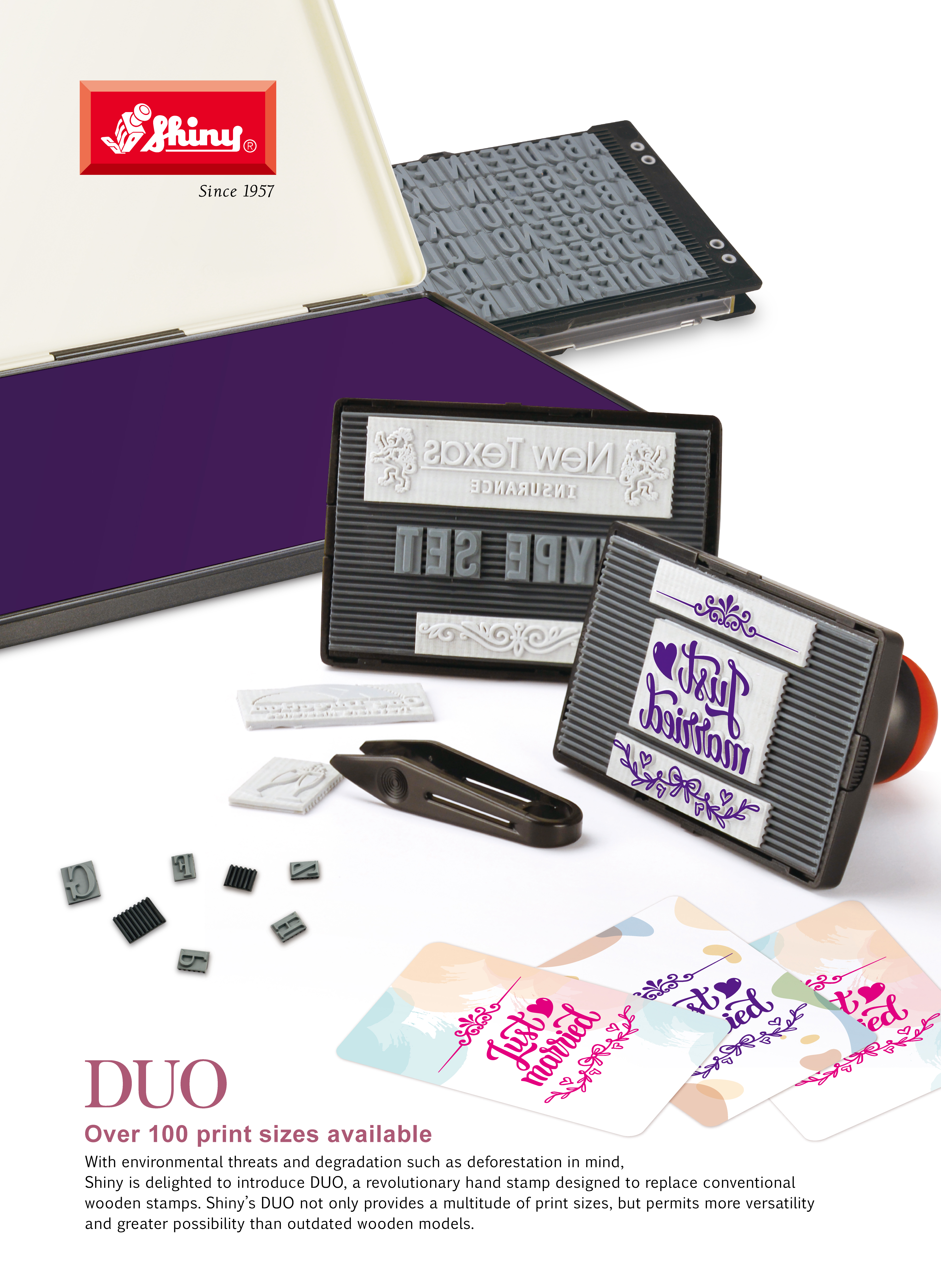 Shiny DUO Hand Stamp is a revolutionary hand stamp designed to replace conventional wooden stamps. Shiny's DUO not only provides a multitude of print sizes, but permits more versatility and greater possibility than outdated wooden models. It can be used as a tranditional stamp mount, and served as a pre-inked stamp mount if intended too.